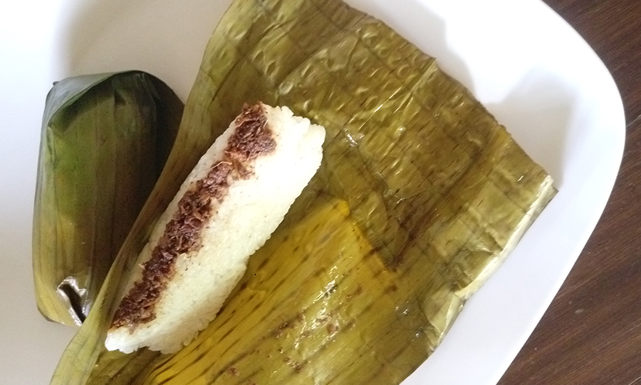 In the Philippines, pastel may refer to any (usually chicken or meat) casserole dish baked in a pie crust. Among Muslim Filipinos, pastel is an alternative spelling of pastil (also spelled patil, patel, or patir), which refer to white rice and meat wrapped in a banana leaf. In the province of Camiguin, however, it refers specifically to pastel de Camiguin, a soft, sweet filled bun.
