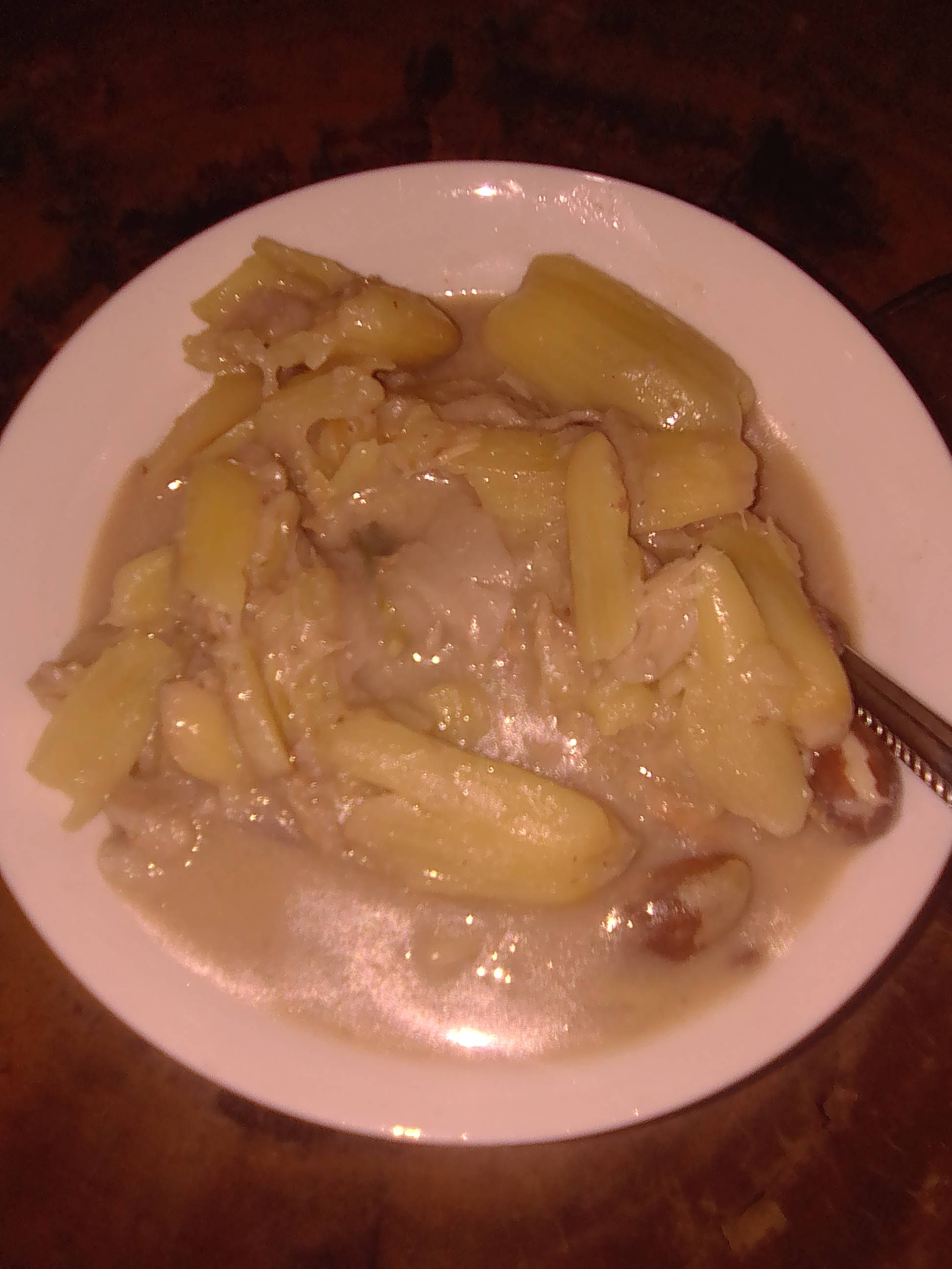 Ginataan, alternatively spelled guinataan, is a Filipino term which refers to food cooked with gatâ (coconut milk). Literally translated, ginataan means “done with coconut milk”. Due to the general nature of the term, it can refer to a number of different dishes, each called ginataan, but distinct from one another.